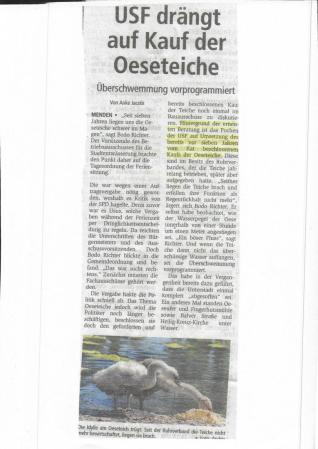 Weil zur Zeit jede Fraktion die Naherholungsanlage Oeseteiche als auf ihrem Mist gewachsen verkauft, sah sich die USF veranlasst, festzustellen, dass es die Oeseteiche ohne die USF nicht mehr gäbe.
