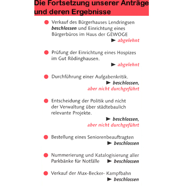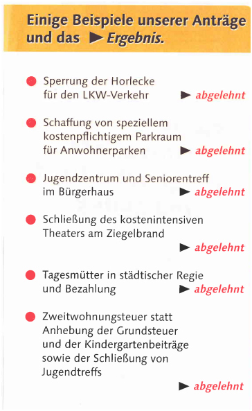 Nach Herrn Hagemann war "das Setzen und Durchsetzen eigener Schwerpunkte in dieser Ratsperiode bis in den Wahlkampf hinein nicht erkennbar".