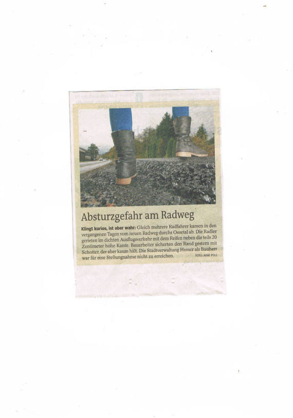 Der gleiche Arne Poll (WP), der über den Antrag der FDP auf Leitplanken entlang des Radweges an der B 7 lästerte (siehe unten), bringt wenige Tage später den nachstehenden Artikel samt Foto.
